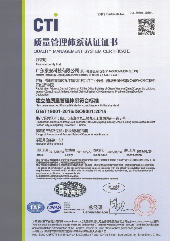 GB/T19001-2016/ISO9001:2015(廣東承安科技有限公司)